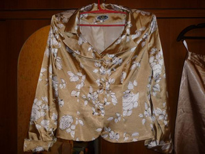 4. Пиджак с красивым узором (на фото не видно) и воротником с пришитым кружевом. Размер М.