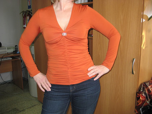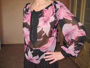 блузка стрейч, очень эффектно подчеркивает декольте 44-46 размера за 400 руб. одевали несколько раз, покупала за 850. Торг.