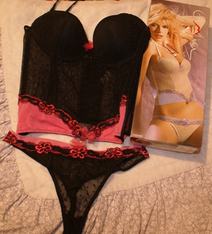 Тройка: Шорты, стринги, лифчик-треугольники.