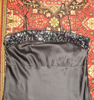 Продам черное атласное платье Beefree, очень красивое, по верху и по низу отделано пайетками. На тоненьких бретельках, длина до колена. Хорошо подчеркивает талию и стройнит. Размер 44-46.