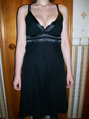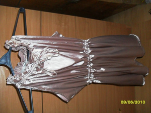 Платье из полиэстера со стразами. Вставлены увеличивающие грудь чашки, сбоку замок. Размер 40-42. На рост 162-172. 500 р