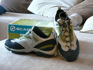 СРОЧНО продам треккинговые кроссовки (не ботинки) SCARPA EGO LADY размер 39, но я ношу 38.5 мне они как раз. Особенно с хорошим носком, куплены в магазине "Снежный лис" три дня назад за 4500 рублей (цена уже со скидкой, ранее стоили 5500р). поносила их эти три дня и поняла, что это все таки не то, что мне надо. Мне надо голяшку повыше. К сожалению, в магазин сдать их уже не могу, так как все-таки я их носила по улице. Хорошие, добротные кроссовки известной фирмы, сделаны в Румынии (если кому это важно), прекрасно подойдут и для похода и просто для города. Очень удобные. Так как мне их нужно срочно продать, чтобы успеть купить себе что-то другое, то цена - 3500 рублей. Это просто подарок для таких кроссовок, характеристики на них можно поискать в инете. Предложение действительно до 19 -20 июля, потом все-таки поеду в них, так как две пары себе позволить не смогу:( Фото.