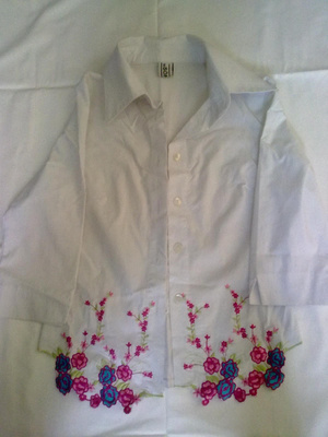 Рубашка с вышивкой по низу, р-р 40, рукава 3/4. Совсем маленькая, может кому для дитя в школу надо