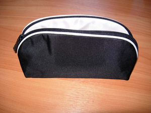 Косметичку черную с белым кантом, внутри розовая. Новая. 200 руб.