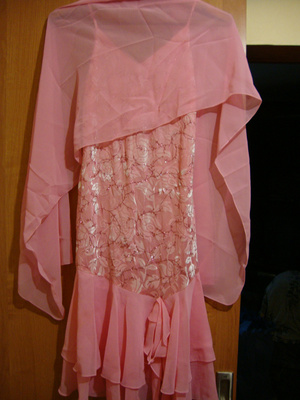 1. плятье розовое нарядное. Где-то 44 размер (одевала один раз) отдам за 250 руб. Идет с платком