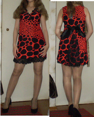 2. Mondigo, одевала 1 раз, потом хорошо похудела. Размер 46-48 (маркировано как 48, будет в облипочку, я одевала с полноценным 44, нормально было). Материал полиэстер