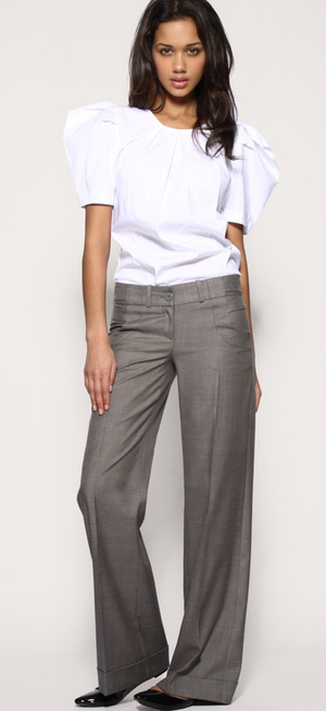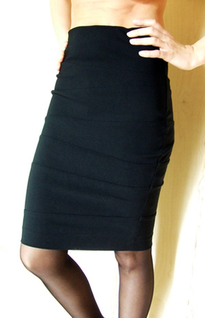 Плотный стрейч, скроена из асимметричных клиньев. Рассчитана на неширокий шаг