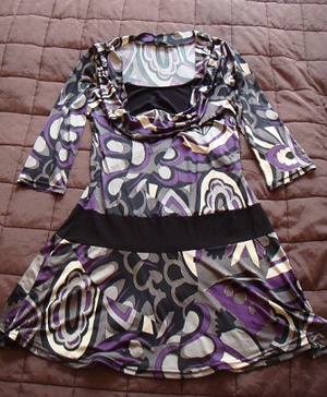 платье-стрейч BeFree , р.38, подойдет на 42 и 44, талия занижена до бедер, на груди "качеля", 800 руб.
