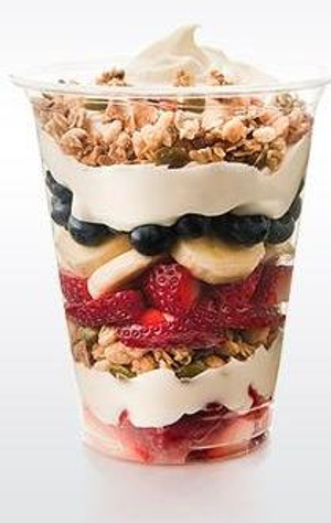 У нас можно собрать ПАРФЕ по своему вкусу - ягод и фруктов свежих более 10 видов и еще масса других добавок сухих и не только. Есть виноград, манго, бананы, ежевика, голубика, мандарины, ананас и пр.