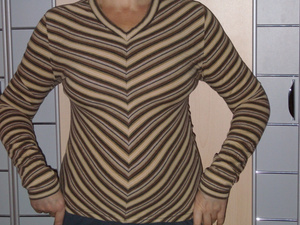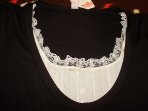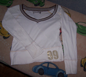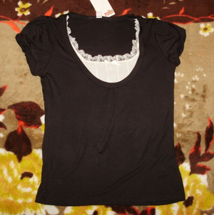 1. Футболку шоколадного цвета. Спереди молочная вставка в рюшками. Новая, с этикеткой. Цена 450 р