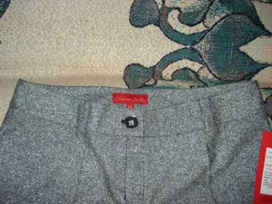 Ткань (80 шерсть, 20 пэ) с добавлением нитки люрекса - цвет серебристый, легкий отблеск, не пошлый, в общем нескучная классика! На размер 44-46 (170-88-96), при росте выше 170 носить можно будет только с обувью без каблука. Длина брюк по внешнему боковому шву 105см, по внутреннему 84см, талия занижена сантима на 3-5, брючины немного заужены книзу. Причина продажи - мне безнадежно большие