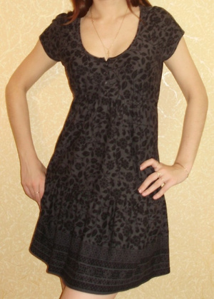 1. Серое платьице в черный цветочек, Можно носить как самостоятельно, так и с водолазкой. Под грудью завязки. Цена 700р