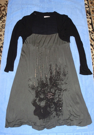 2. Трикотажное платье Promod. Верх - черное лиф-болеро, низ - серое. Ну оччень красивое. Цена 1800р.