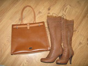 К ней в комплект могу предложить отличные зимние сапоги итальянской фирмы B2, покупала за 8 тысяч в Москве. Супертеплые, даже в 35-градусные морозы нога не замерзала, с лисьим мехом и натуральной цыгейкой. Носила раз 10. Отдам за 2.200, очень подходит к сумке, суперски смотрятся вместе.