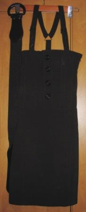 черный сарафан на корсете с ремнем, длина с лямками 90 см, чуть выше колена, р-р 42 (65% хлопок, 35% п/э, тянется) надет пару раз - 500 р