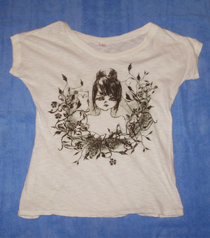 6. Белую футболку с черным рисунком. Одета 1 раз. Размер 44-46. Цена 250 р.