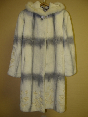 Продам шубку из стриженной норки (бело-серая) с орнаментом по низу, по бокам блестящий декор, размер 46-48. Состояние отличное. Цена 30 т.р.