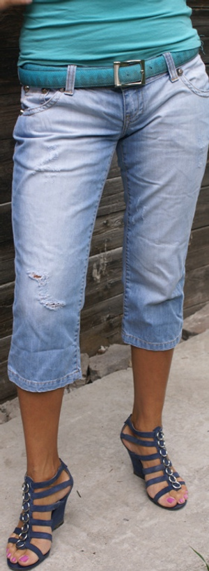 Джинсы -капри из немецкого каталога, новые, р-р 44, цвет шоколадный с потертостями, карманы отделаны кожей., отличное качество ткани, 1500 руб, разумный торг