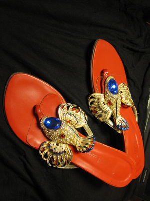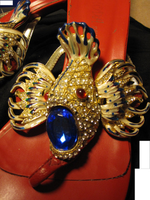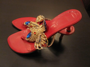 продам босоножки "жар-птица" (а может и рыбка), безумно красивые, цвет красный (фото реального цвета ниже), немного б-у, высота каблучка 6 см, размер 37, нет несколько стразов (абсолютно не видно), есть чек на 1850 руб. Моя цена 850 руб.