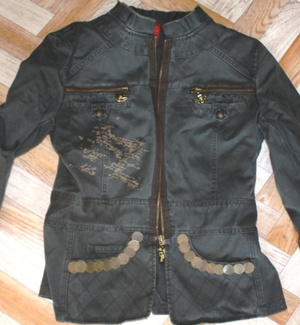 Первая - Манго, серая с золотой крошкой. Отличнейшее состояние, стильный ворот на кнопках. Простите за измятость-лежала в чемодане - 500р