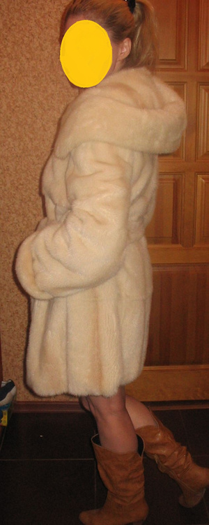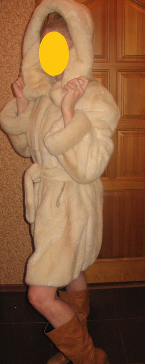 Норковая шубка, цельные пластины, цвет нежно-бежево-молочный, большой двусторонний капюшон, норковый пояс, длина 85, р-р 46. Шубка очень красивая и нежная! Италия. Цена 24. 9137894422