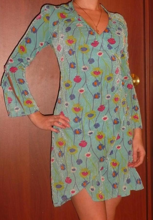 Длина платья 83 см. Спинка черная. Впереди красивый рисунок. Отдам за 3000. (Стоило оно больше 4000).