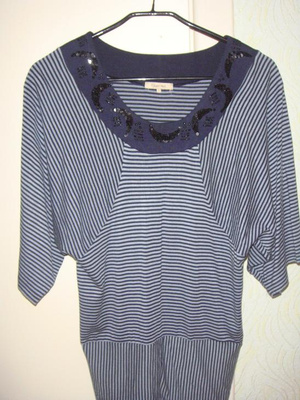 Кофта в полосочку синий с серым.Фасон летучая мышь. Одета пару раз. Размер 42-44. Отдам рублей за 400. Торг