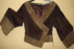 Продам эксклюзивный жакет из натуральной замши, коричневого цвета, в стиле кимоно, с декоративной вышивкой. Размер от 44-го до 48-го. 5000 руб. Контакты здесь