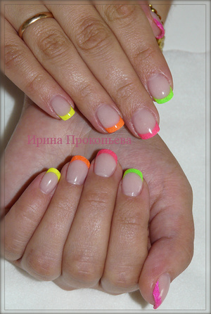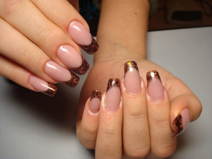 Если ты хочешь их разными лаками(то тёмными, то светлыми) покрывать, то укрепить лучше гелем, т.к. он не впитывает цвет. можно френчик сделать, как на фотографии - это тоже укрепление.Не цветными лаками не крашу,и как то гель я не очень!Так хочу, как на фотке, фрэнчик-мой любимый!А потом, когда отрастает, нужно корректировать?