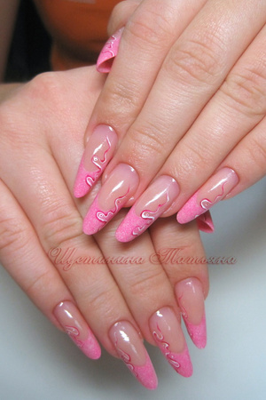 Во-вторых, хочется прокомментировать работу, которая вызвала такую бурю эмоций (отличный пиар, кстати))): моделирование профессиональное, на высоком уровне, красивое удлинение, ноготочки поджатые, изящные. Сама только что похожие относила, сегодня сняла (делала мне Ольга Маркина).