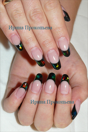 Смотрю на эти ноготки в вашем исполнении и думаю, что эти ноготки вроде простые, а у каждого мастера они по своему чудесны! выглядят потрясающе, хотя я не любитель черных френчей, но эти.... такая глубина цвета... ой, Вы уже убрали фотографию- зря, у Вас так красиво кончик играет, переливается!