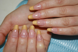 Есть у меня один пример. Акрил золотой оказался ну просто отвратительного качества, думала, что дуранусь, пока ноготки сделала. Ни о какой колбаске речи и не шло
