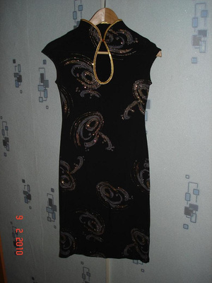 Продам платье Vezarro, 46 размер,при росте 165см чуть выше колена, черное с фиолетовой ставкой на груди.Грудь не больше 2 размера. Цена 1000руб.