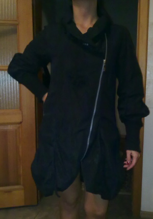 2. Плащ осенний черный COP COPINE,необычный крой,немного б/у, вязаные рукава, смотрится очень хорошо!Размер 46. Цена 1200руб.