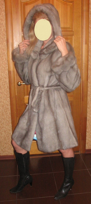 Норковая шубка, обворожительный, редкий, чистый цвет - "голубой сапфир", длина до колена, норковый пояс, декор двустороннего капюшона и рукавов зубчики, цельные пластины, была куплена за 78, продаётся за 29800