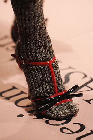 только если это цветные или грубые колготы или даже носки (как на фото - лично мне затея нравится, но на практике не пробовала) - должна быть некоторая нарочитость в таком сочетании ...а вот с телесным цветом это пошло (к сетке тоже относится). Единственное, где-то читала, сетка допустима в туфлях с открытым мыском, а вот с босоножками точно нет.