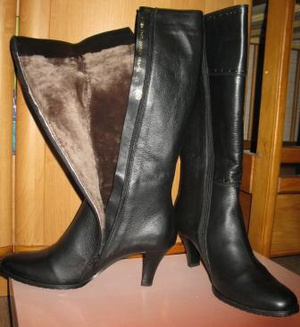 Натуральная кожа, натуральный мех. Высота каблука 7 см., обхват голенища в самом широком месте - 19 см., в самом узком - 12,5 см. Подойдут на ногу средней полноты, или полную.