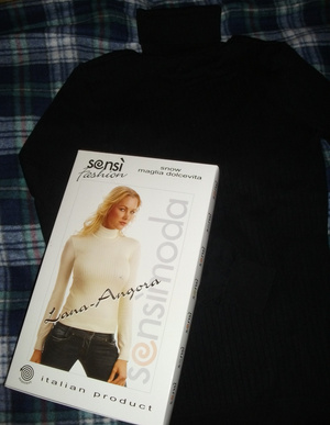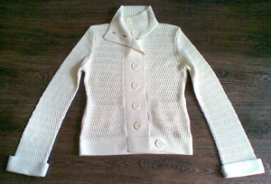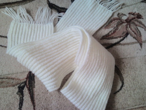 Вязаный в ручную шарф. Очень теплый! Моя бабушка связала, подарила, а я их не ношу вообще. Так что он просто лежит... Следовательно новый