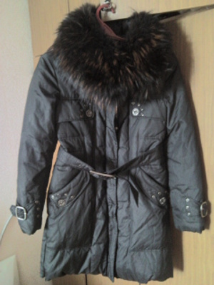 Пуховик с капюшоном. цвет черный. Р-р 44. Оторочка меховая (песец). Очень теплый. Одет 1 раз. 3000 руб.