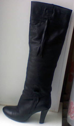 продам осение черные кожанные сапоги на высоком каблуке, одевала один раз всего, размер 40, отдам за 350 руб,проданы