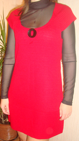 Черное теплое платье, с разрезм сбоку, в красивую елочку-400 руб.Размер 48-50.