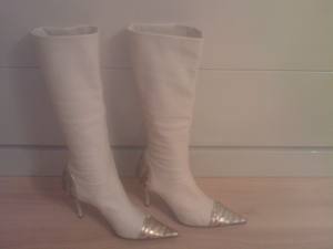 Невероятно красивые и гламурные босоножки итал. фирмы Luichini, натуральная нежнейшая замша очень нежного светло-сиреневого цвета, высоченный каблук "под змею", платформа около 3 см, удобная колодка, бантик - в общем, просто мечта, а не босоножки. Новые, приехали из Штатов. Размер 39-39,5, по стельке около 26 см. Кожаная стелька. Мне большеваты плюс каблук слишком высокий, с моим ростом на них смотрюсь, как гренадер какой-то.