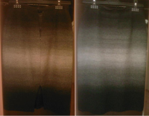 Черная юбочка из плотного, но немного тянущегося материала, с ассеметричным подолом и бахромой. Ткань с мелким рисунком на фото не видно. Сзади замочек. Длинна короткого края 40 см, а длинного-54 см. Размер 48. Цена 350 руб.