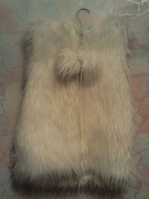 Жилетка с капюшоном из искусственного меха, р. 42-44 (качество фото плохое, на самом деле чисто белая) 300р.