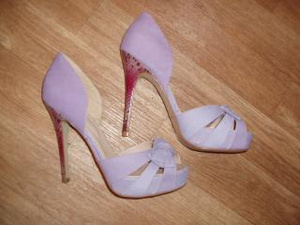 Невероятно красивые и гламурные босоножки итал. фирмы Luichini, натуральная нежнейшая замша очень нежного светло-сиреневого цвета, высоченный каблук "под змею", платформа около 3 см, удобная колодка, бантик - в общем, просто мечта, а не босоножки. Новые, приехали из Штатов. Размер 39,5 -40, по стельке около 26 см. Кожаная стелька. Мне большеваты плюс каблук слишком высокий для моего роста.