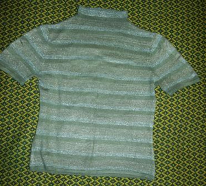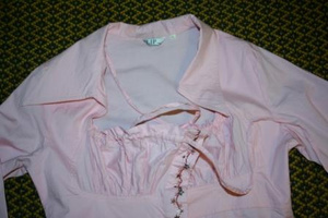 Нарядная кофточка из легкой, но прочной, почти прозрачной ткани, со вставкой на груди, чтоб не просвечивало, глубокое декольте,по декольте пайетки, длинные ассиметричные рукава, внизу у кофты сбоку завязывается интересный узелок. Размер 46-48. Цена 500 руб.