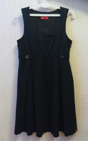 Черный сарафан из хлопка, р-р 44-46 (молния на боку). Длина - 85 см. Смотрится очень мило, юбка расширяется от груди (подойдет и беременным). Носила недолго - перестал подходить по размеру. Цена 500 руб, торг.