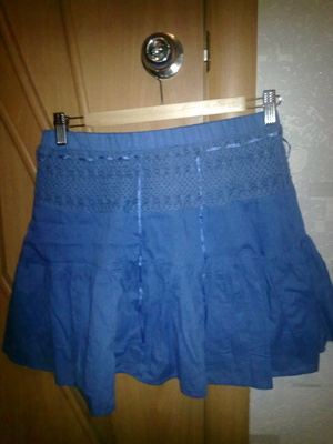 юбка, синяя (прошу прощения что мятая, лежала в шкафу), р-р 44-46, б\у несколько раз, талия высокая, смотрится очень красиво, особенно если ноги длинные