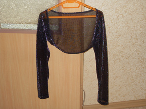 4. Рукава праздничные. Материал "типа капрона". Цвет чёрный блестящий. Состояние отл. Шились на заказ. Длина рукавов 65 см., длина спинки 23 см. Размер 42-44. Цена 300 р.