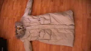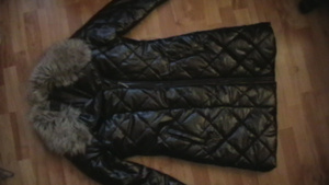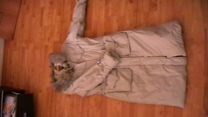 Куртка зимняя, на синтепоне. Но не на сильный мороз. Ношена раза 4. Ниже колена. Размер 44-46. Покупалась в ГУМе. 600 руб